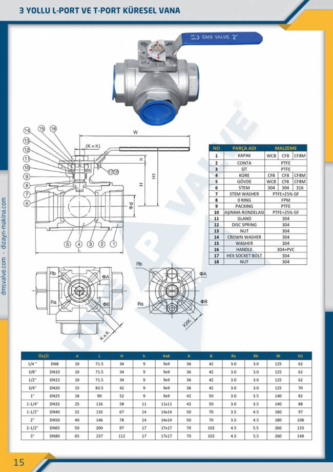 * Sızdırmazlık elemanının değişimiyle yüksek veya düşük sıcaklıkta çalışma koşullarına uygunluk sağlanabilir.